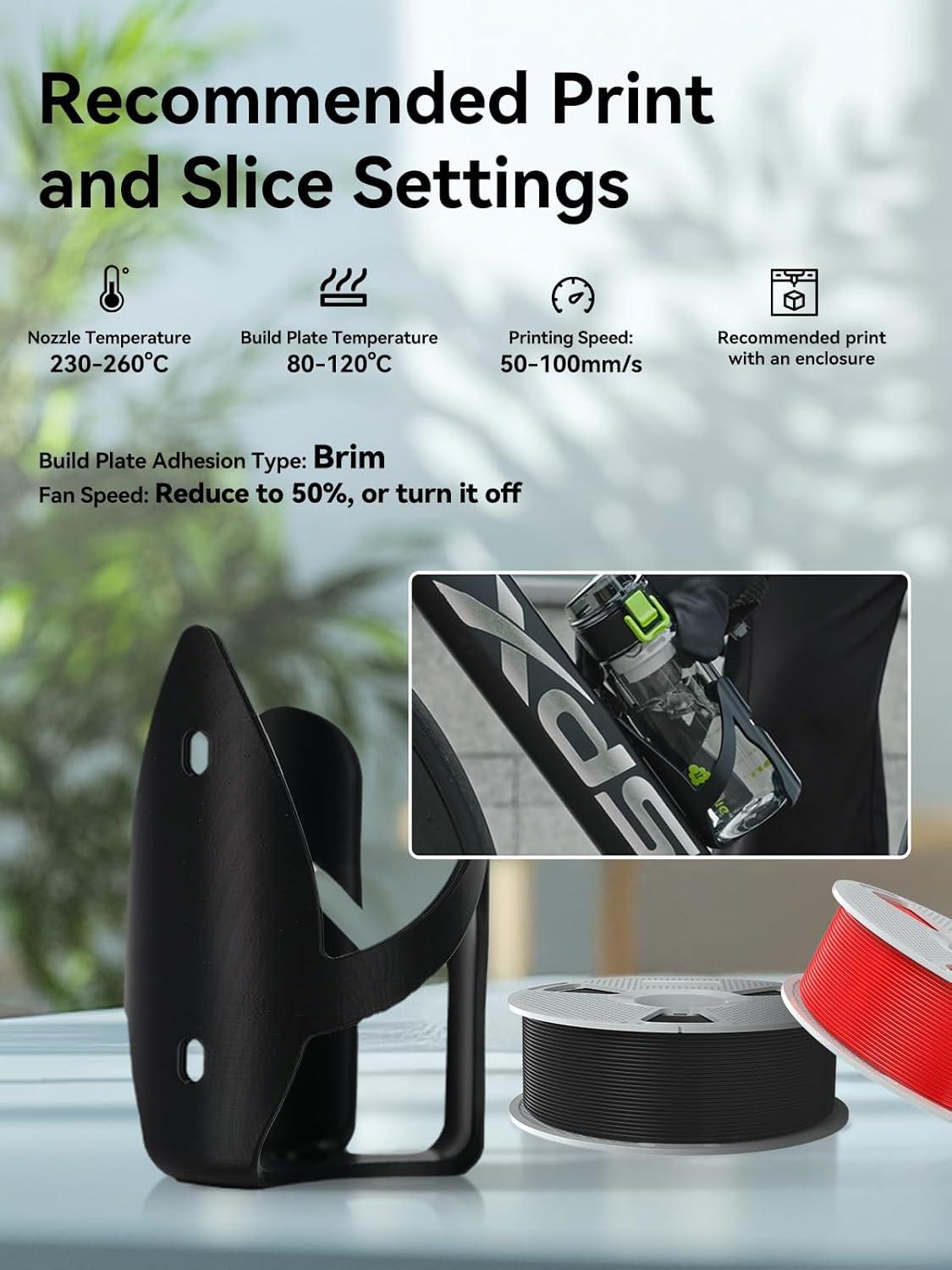 ⑥【Recommend Settings】We recommend printing at a nozzle temperature of 230-260°C(446-500°F), bed temperature of 80-120°C(176-248°F), printing speed of 50-100mm/s.