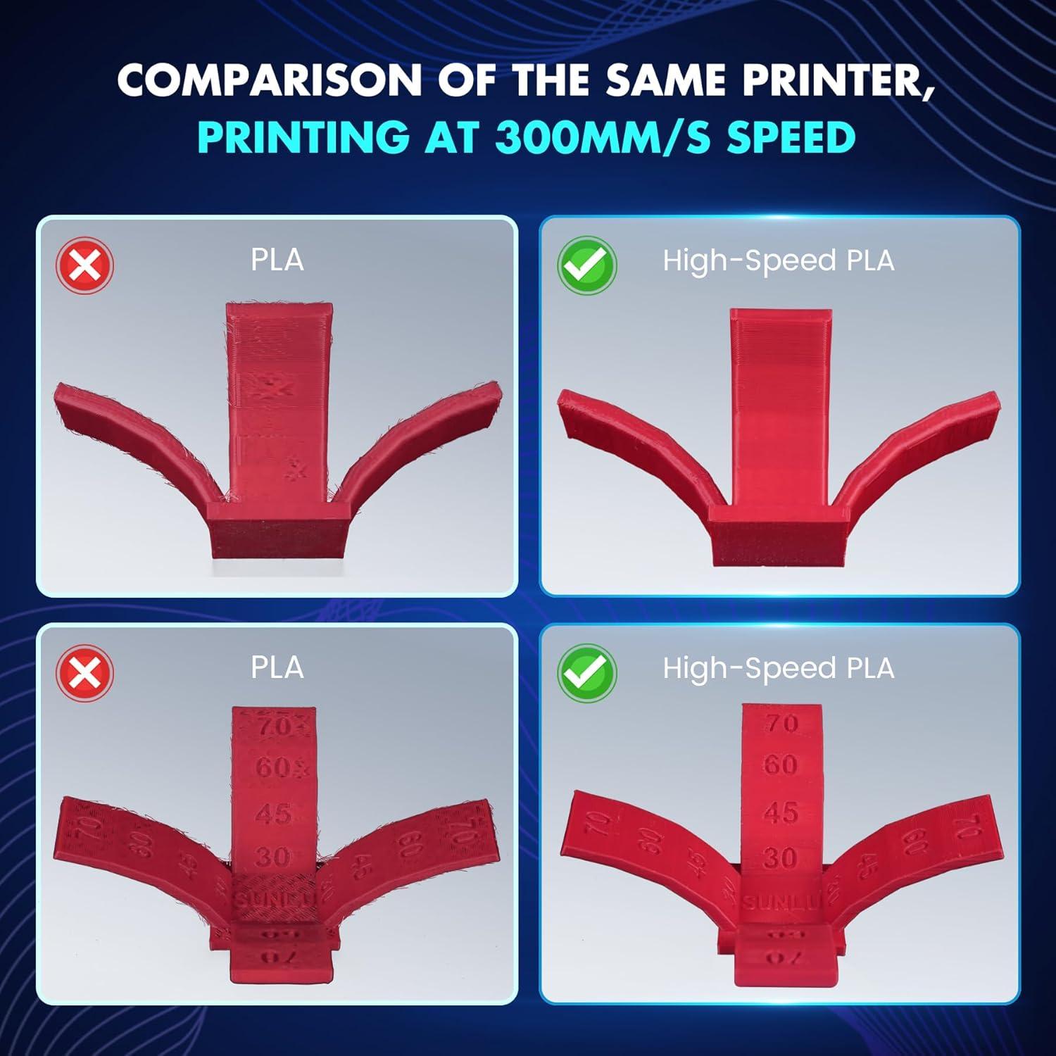 ①【Print Faster】 -SUNLU high-speed 3D printer PLA filament, designed to turbocharge your printing from slow to swift. Experience a colossal 500% increase in flowability, ensuring smooth printing even at speeds exceeding 250mm/s, without clogs or filament shortages. Bring your ideas to life with high-speed printing, on average, save 70% printing time.