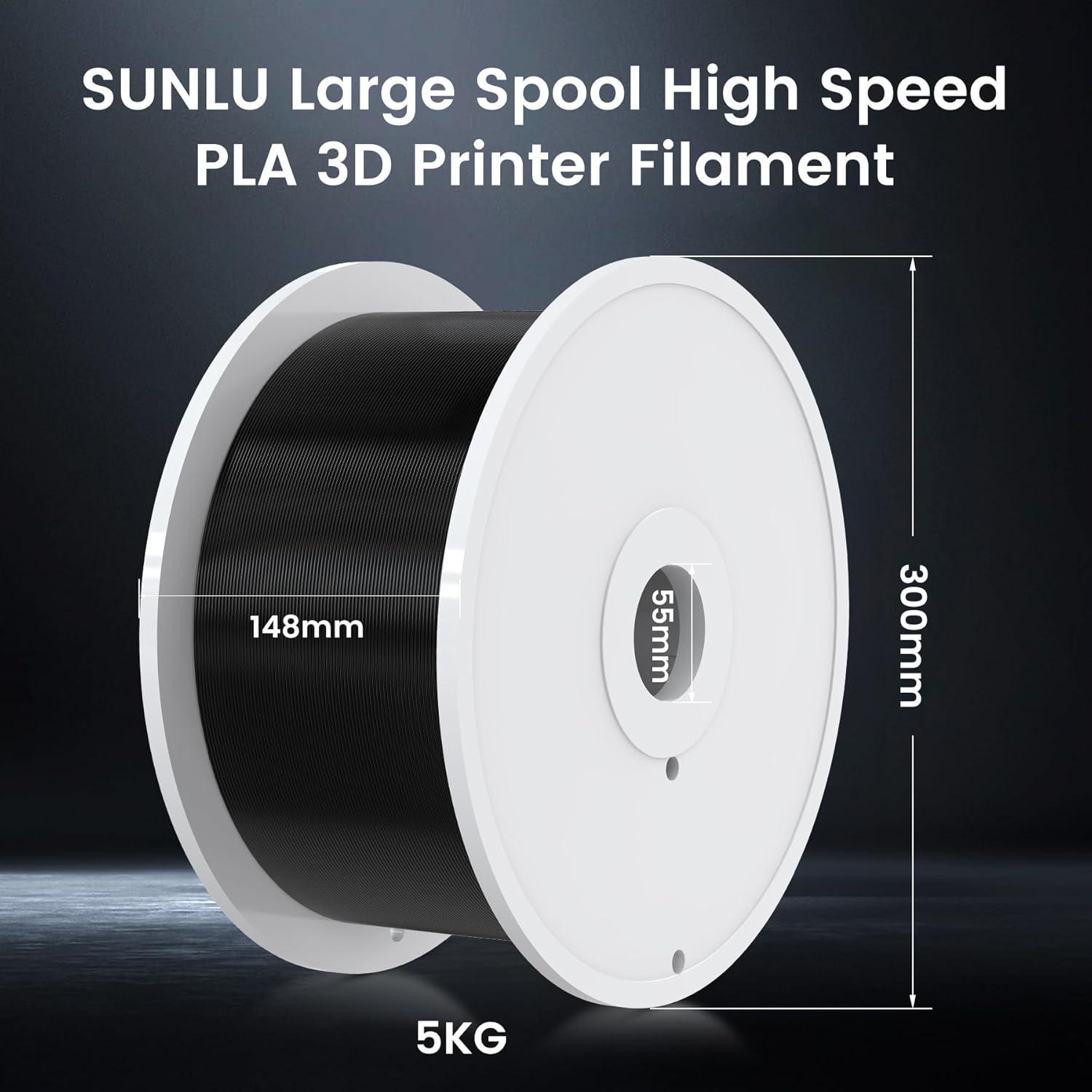 imageSUNLU High Speed 175mm PLA Filament 1KG Red 30600mms Print Range 1KGLarge Spool 5kg Black
