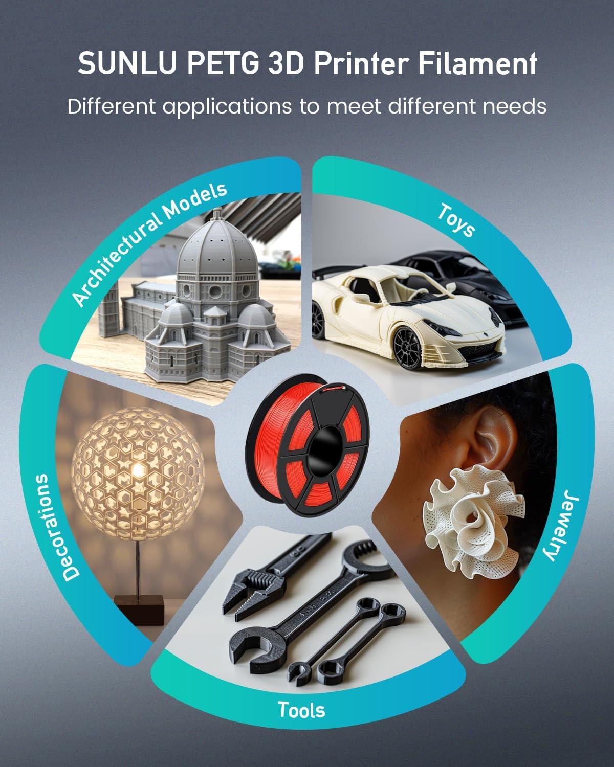 ①【PETG Filament 1.75mm】SUNLU PETG 3D Printer Filament combines the advantages of both PLA and ABS 3D printer filament, making 3D printing more convenient and easy.