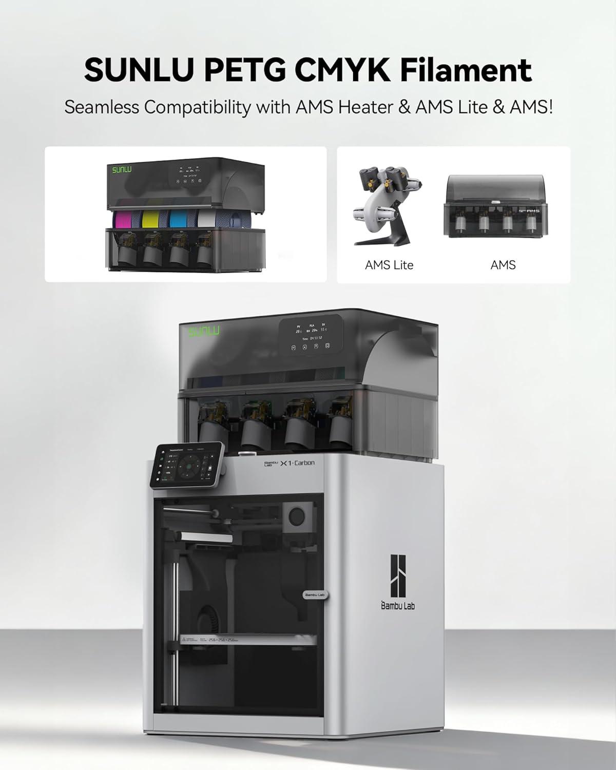 SUNLU PETG Glow in The Dark Filament Bundle,Luminous PETG 3D Printer Filament 1.75mm,Dimensional Accuracy +/- 0.02mm,4kg in Total,1kg per Spool,(White, Glow Blue/White, Glow Green/Glow Blue/Glow Red).(Cmyk 4kg Petg White+cyan+magenta+yellow)