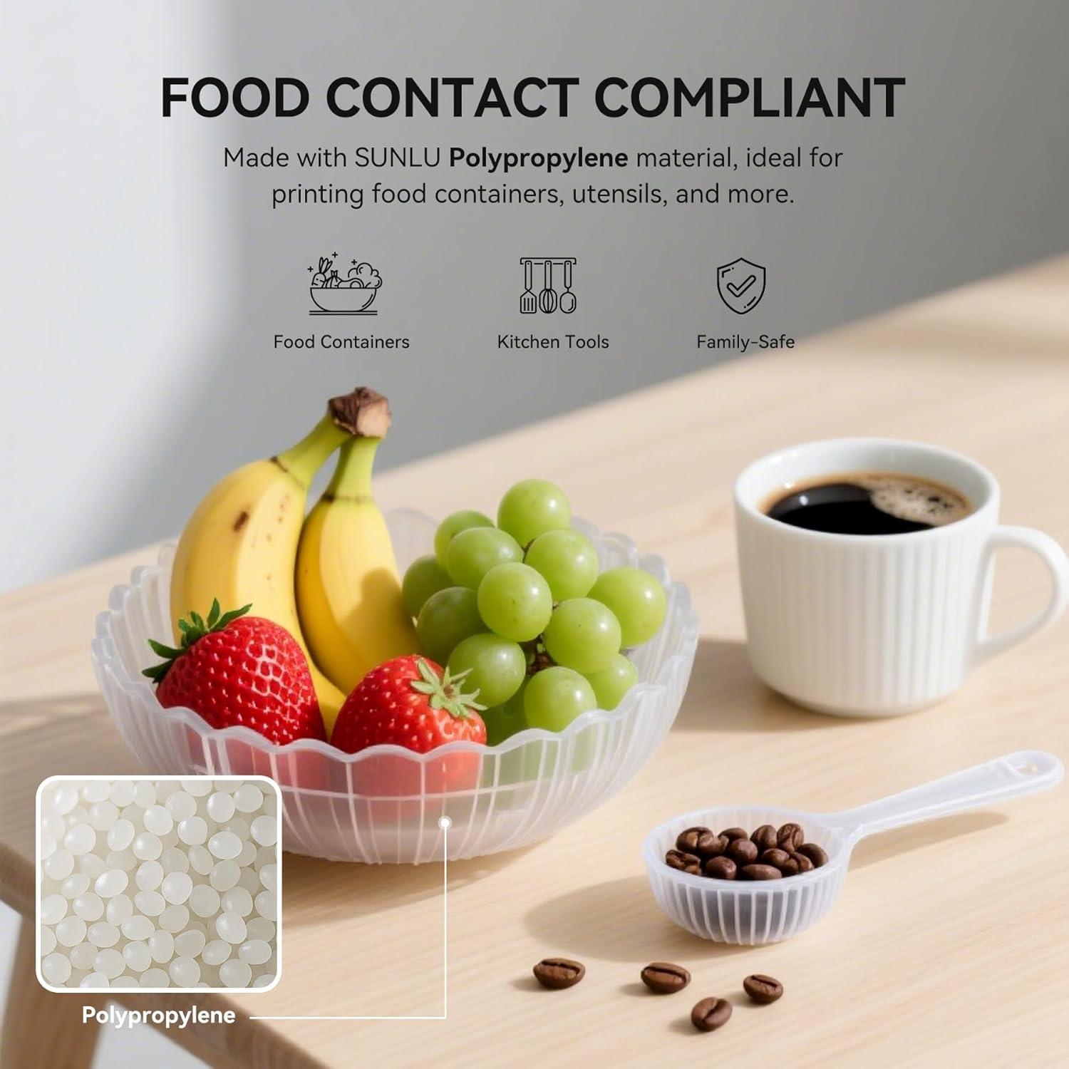 SUNLU PP Filament,1.75mm Polypropylene 3D Printer Filament, Ultra Tough and Lightweight PP+/-0.02mm, 800g/Spool, Natural White(800g Pp Natural White)